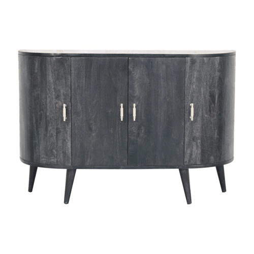 The Ash Black T-Bar Quad Cabinet embodies sustainability, crafted from eco-friendly mango wood, a renewable resource known for its sturdiness and beautiful grain. The production process minimizes environmental impact and emphasizes responsible waste management. By choosing this cabinet, you support sustainable practices that contribute to the conservation of natural resources and the promotion of a healthier planet.