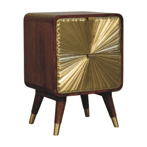 Trade Only Avora Brass Embossed 2 Drawer Chestnut Nightstand Suppliers