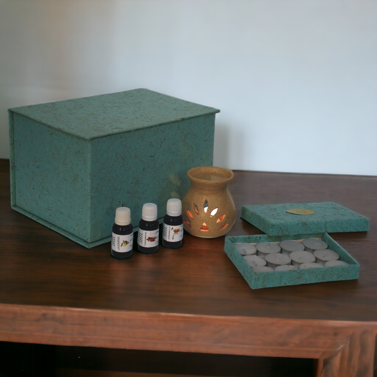 - 1x Burner + 3x Aroma Oil 15 ml + 12 x Unscented Tealight Candles