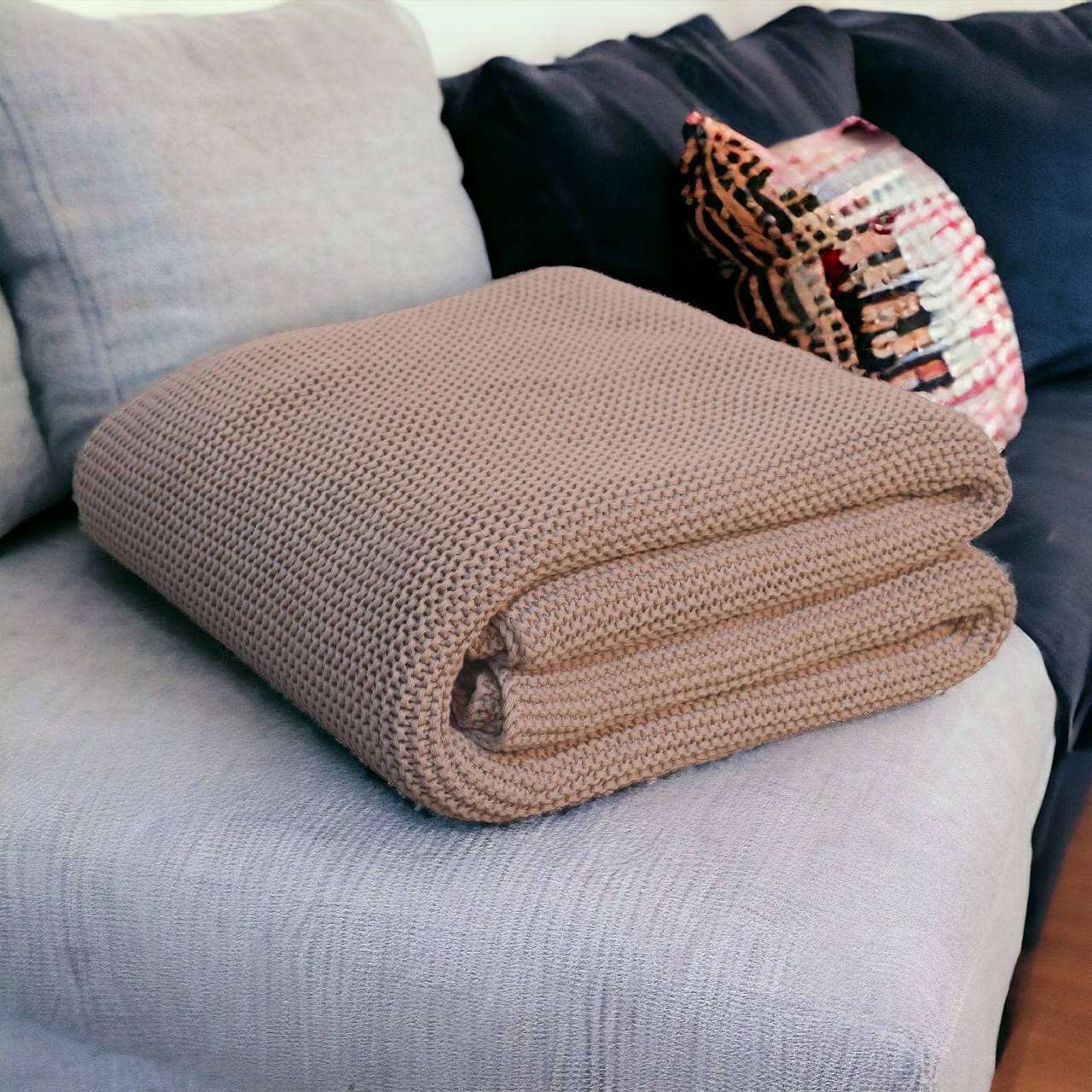 Wrap Yourself in Luxury with the Double Bed Size Beige Knitted Throw