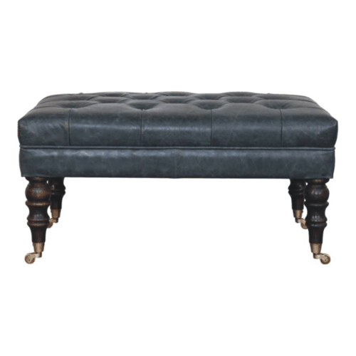 Exude Elegance with the Buffalo Teal Leather Ottoman with Castor Legs