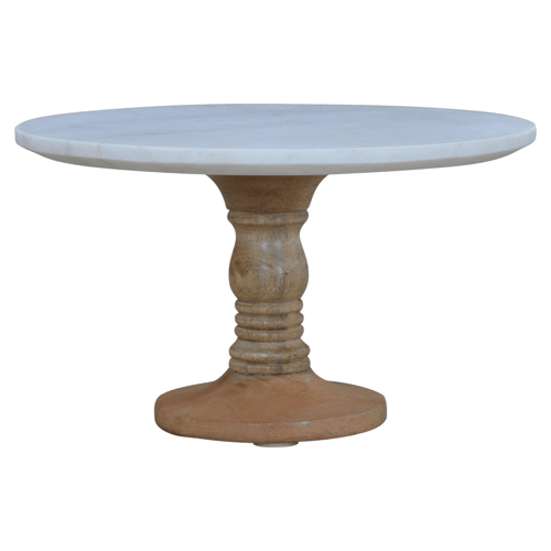 Our Marble Top Cake Stand is not just a product, but a story of craftsmanship and heritage. Each stand is meticulously carved and finished by hand, preserving the artisanal essence inherent in traditional Indian furniture making. The wooden base, shaped and smoothed by skilled hands, carries with it the spirit of generations of artisans whose dedication to their craft adds an intangible value that goes beyond mere aesthetics.