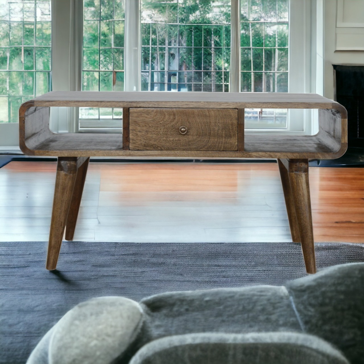 Elevate Your Living Room with the Curved Grey Washed Coffee Table