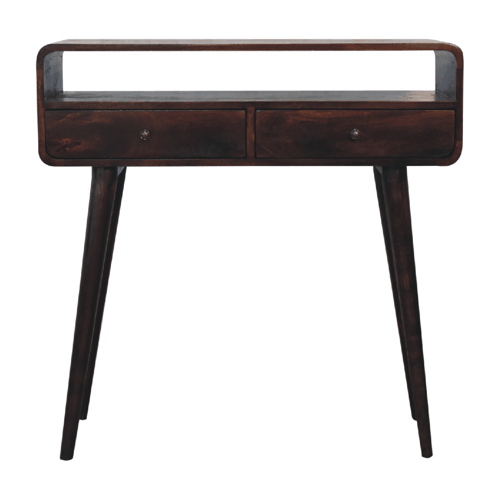Handmade Indian furniture showcases the exquisite craftsmanship of local artisans. Each piece of the Curved Light Walnut Console Table is crafted using traditional techniques and local materials, highlighting the dedication and skill of these talented craftsmen. The unique nuances of each table celebrate a rich heritage, blending functionality with cultural artistry and ensuring every piece is as unique as the home it adorns.