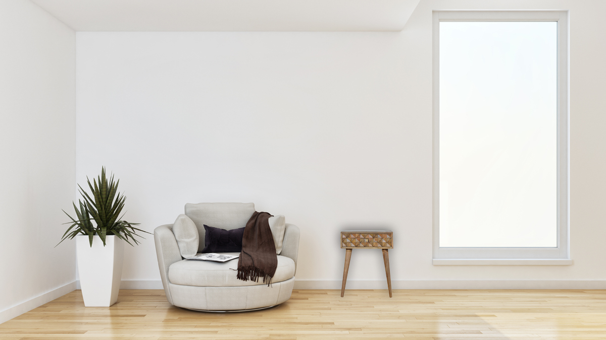 The main feature of this bedside is the carved cube drawer fronts which make the pieces from this collection stand out. It has been constructed from 100% solid mango wood in an oak-ish finish and stands on 4 Nordic style legs. It can be partnered with the other pieces from the range or stand individually as its style is versatile and can fit into different types of interiors.