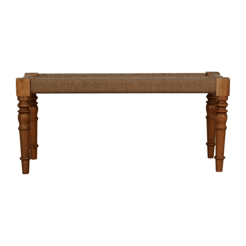 Beneath the soft fabric lies the true testament to this bench’s design heritage—four exquisitely turned legs, constructed from 100% solid mango wood. These sculptural legs not only display remarkable craftsmanship but also provide sturdy support with a sense of historical grandeur. Each curve, each contour of the turned wood speaks volumes about the artisanal spirit that shaped it, bringing together form, function, and the finesse of traditional furniture-making techniques.