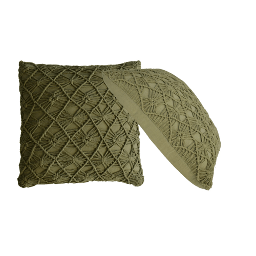 Design and Materials: The allure of the Green Maura Cushions lies in their intricately woven cover. Each cushion showcases a striking macrame design that is both contemporary and timeless, making it an ideal accent piece. Crafted from premium quality materials, these cushions ensure durability and longevity while maintaining their plush softness. The fabric is soft to the touch, providing a comfortable experience whether you are lounging, reading, or entertaining guests.