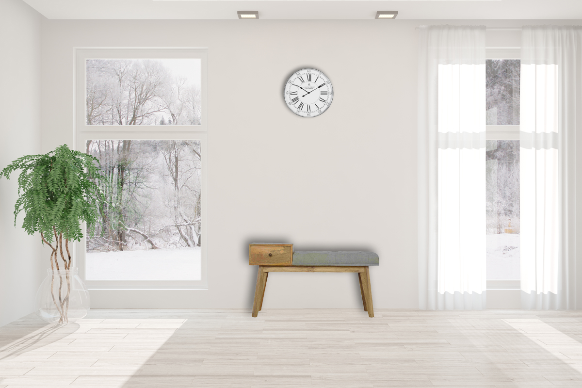 Enhance your home’s warmth and functionality with the Grey Tweed Bench with 1 Drawer, a masterpiece that marries solid construction with elegant design. Perfectly suited for the hallway, living room, or bedroom, this bench is a versatile addition to your furniture collection, offering convenience and style in one beautifully crafted piece.