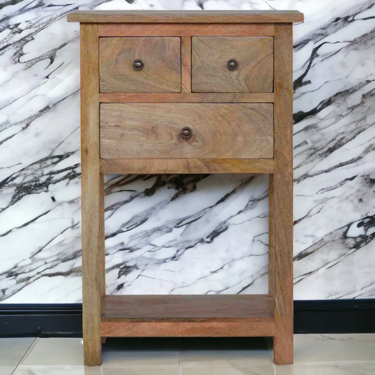 Authentic, handmade Indian furniture, like our Country Style Telephone Table, brings to life the skilled artisanry of local craftsmen who have honed their art over generations. Each table is a narrative of the artist’s finesse—a love letter to traditional woodworking methods and an emblem of the rich cultural tapestry of India. The individual character of each telephone table speaks to the dedication of the artisans who create these bespoke pieces, transcending mere functionality and becoming a storied heirloom that pays homage to the legacy of handcrafted Indian furniture.