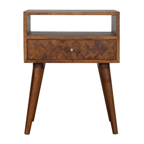 Embrace Contemporary Elegance with the Assorted Open Chestnut Bedside Table