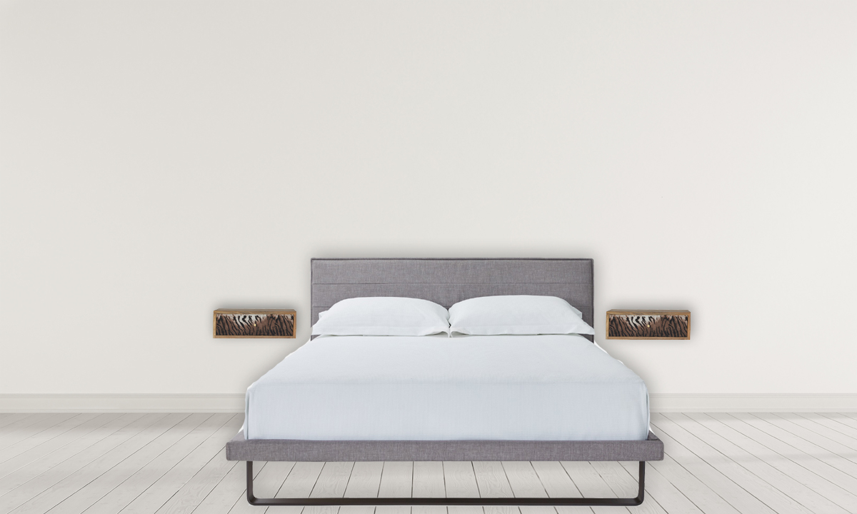 Introducing Animal Print. This wall-mounted bedside will take your bedroom to another level. Constructed from 100% solid mango wood in a fine oak-ish finish, the main feature being the drawer has a beautiful tiger animal print drawer finished with a shiny knob giving the whole piece extra character.