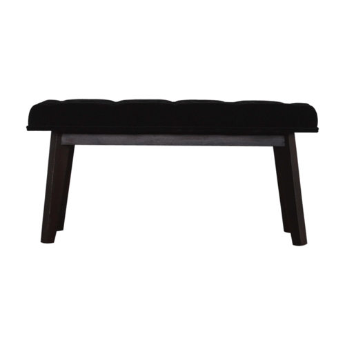 Constructed from 100% solid mango wood, this bench’s Nordic-style legs are drenched in a lavish walnut finish, ensuring both durability and a timeless appeal that mesmerizes. The silky touch of the plush velvet seating is a sensory indulgence, while the sturdy frame provides an unwavering foundation capable of withstanding everyday use. From the smooth black velvet to the rich wooden tones, this bench harmoniously blends materials to offer a seamless aesthetic experience.