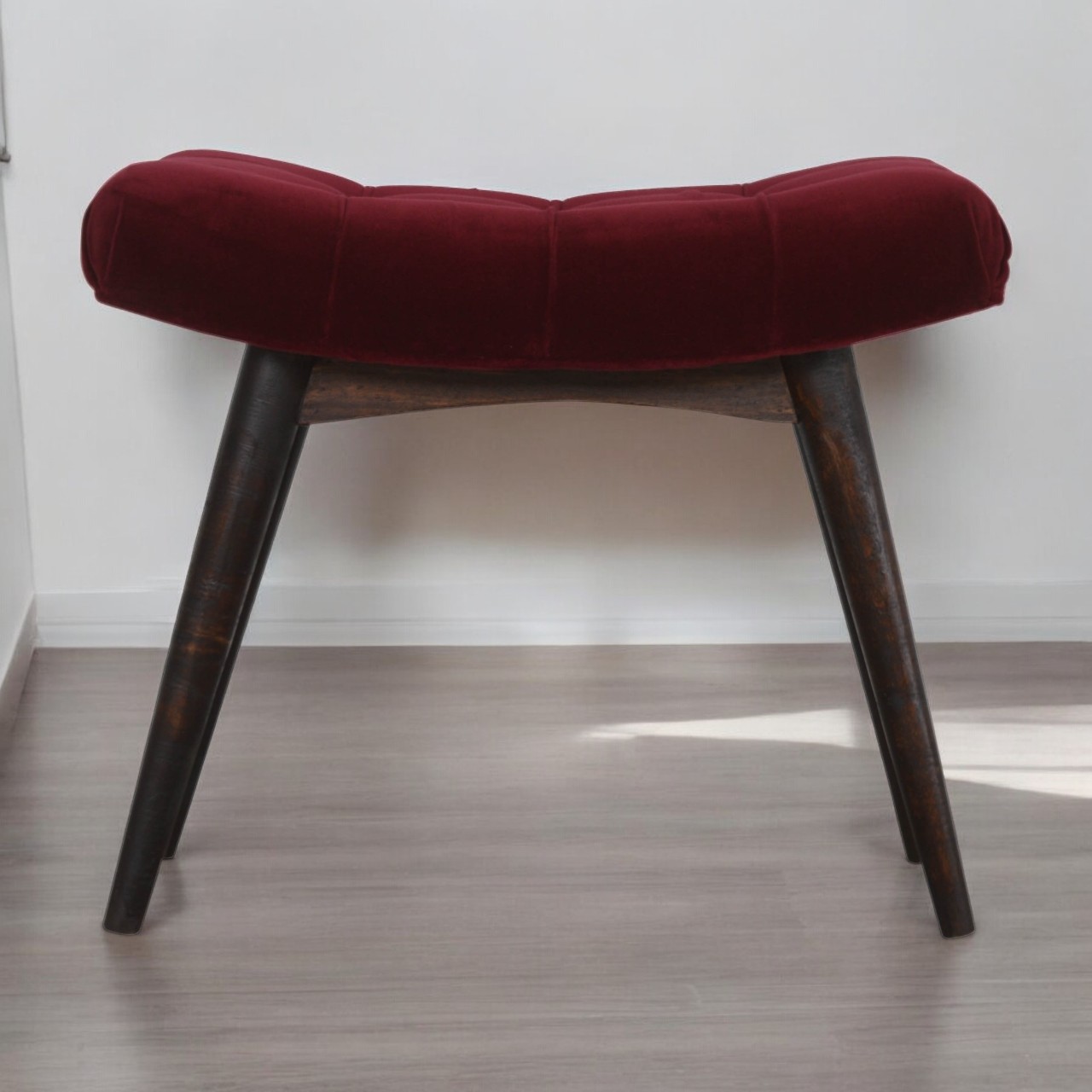 Indulge in the Luxurious Comfort of the Wine Red Cotton Velvet Curved Bench