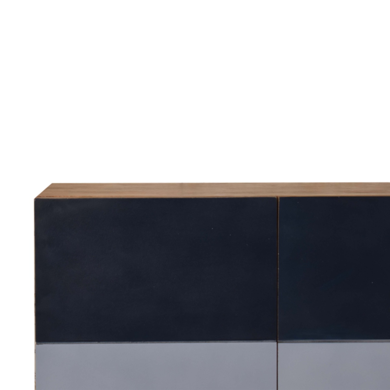 Introducing the Quebec Blue Cabinet—a masterclass in statement-making elegance, meticulously handcrafted to enliven your home with its distinctive L-pattern design and a trio of rich blue hues. This versatile piece of furniture transcends mere functionality to become a captivating centerpiece that exudes sophistication and accessibility in equal measure.