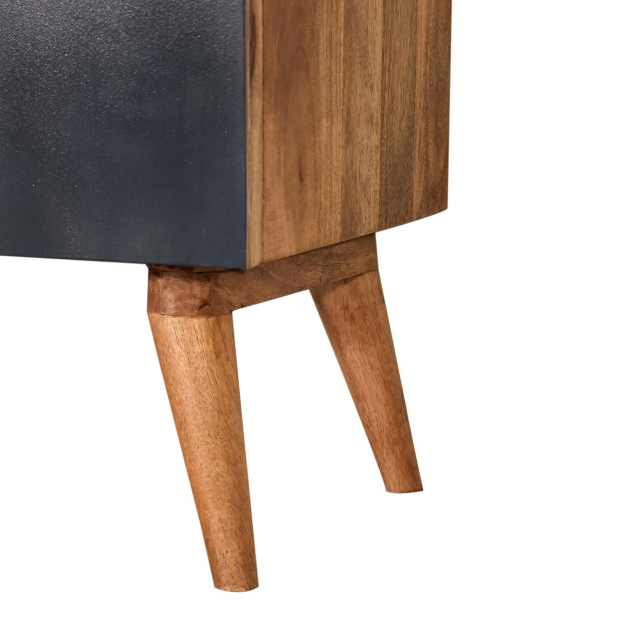 The body of the Quebec Blue Cabinet is constructed entirely from 100% solid mango wood, a testament to sustainability and enduring quality. Complemented by nordic style legs, it elevates the piece’s form with a touch of minimalistic elegance, all while maintaining sturdy support.