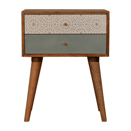 Infuse Serenity and Style into Your Restful Haven with the Green Patterned Bedside Table