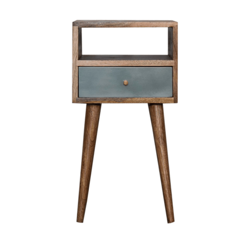 Crafted with an unwavering commitment to quality, the Mini Duck Egg Painted Bedside is a testament to the art of fine furniture making. Made exclusively from 100% solid mango wood, it features a fine oak-ish finish that tenderly enhances the rich textures of the wood while also ensuring a robust and durable form. The intimate grain of the mango wood lends each bedside a distinctive character—no two are exactly alike, giving you a one-of-a-kind piece direct from nature’s canvas.