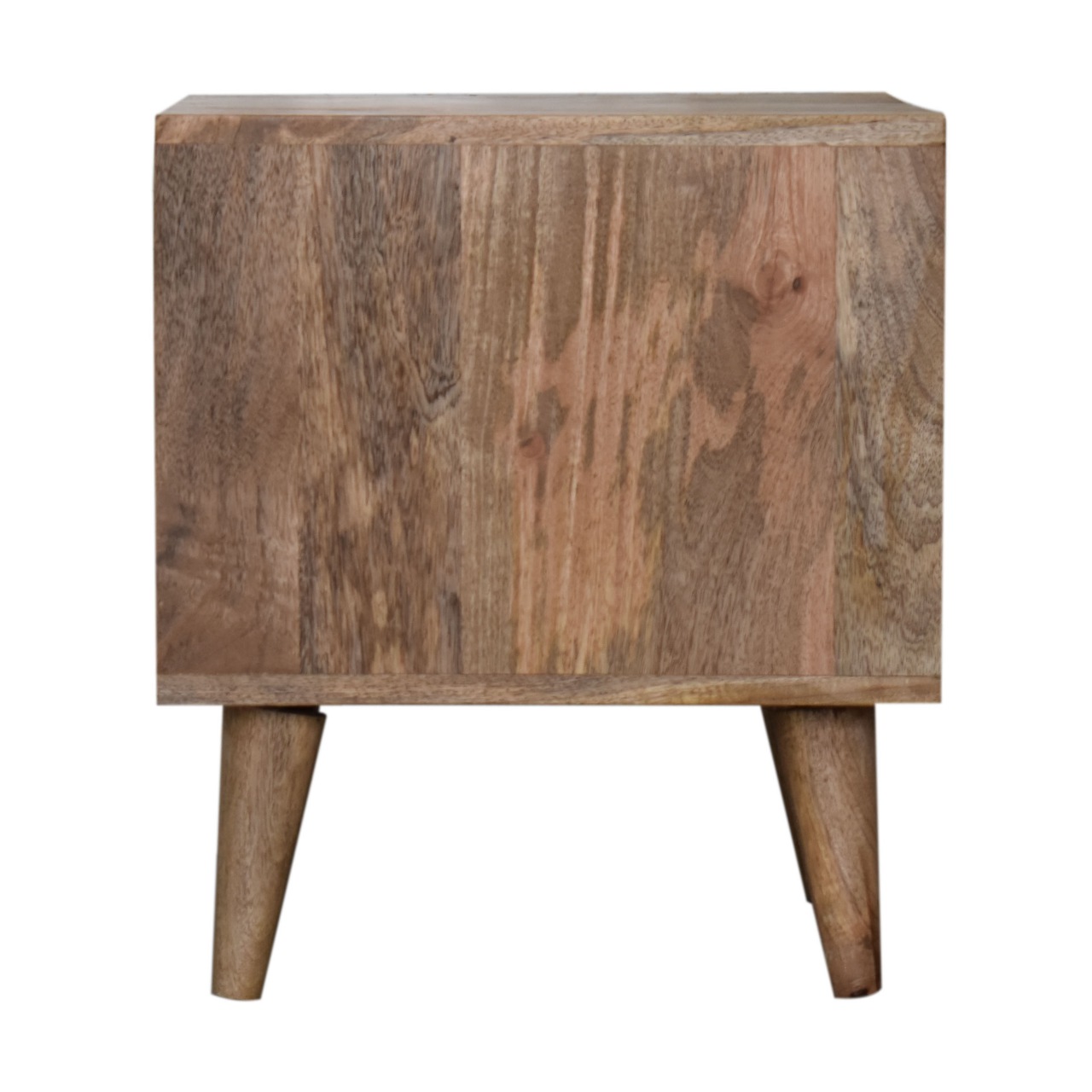 Constructed from the heartwood of 100% solid mango, known for its durability and striking patterns, the pet bed boasts an inviting oak-ish finish that radiates warmth and coziness. Standing firm on four gracefully crafted Nordic-style legs, the bed emits a minimalist charm that fits snugly into any contemporary interior design scheme.