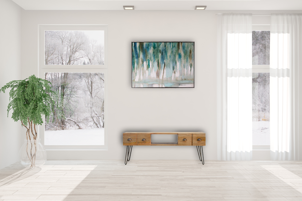 A smooth oak finish enhances the wooden body of the media unit, highlighting the rich grains and natural beauty of the mango wood. This finish is achieved through eco-conscious processes, reflecting our commitment to sustainability and environmental responsibility.