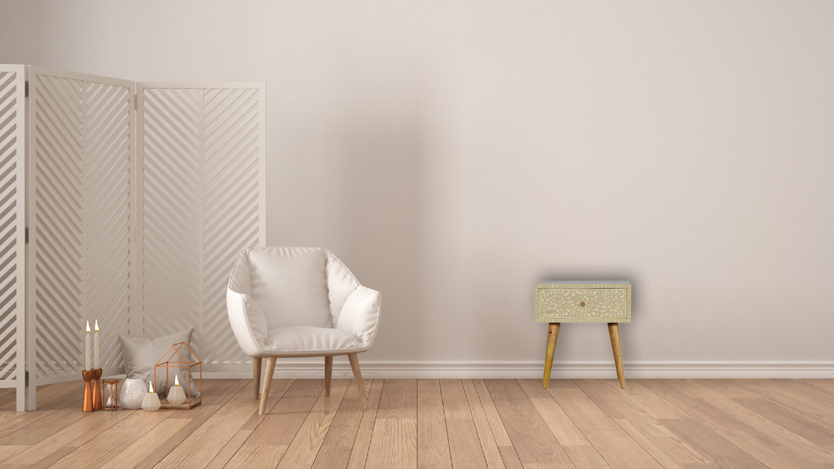 Handmade Indian furniture showcases the exquisite craftsmanship of local artisans. The Floral Bone Inlay Bedside Table is a stellar example, crafted using traditional techniques and locally sourced materials. This table not only champions functionality but also serves as a piece of cultural artistry. Each bone inlay design is meticulously handcrafted, highlighting India’s rich heritage and the artisans’ commitment to their timeless craft.