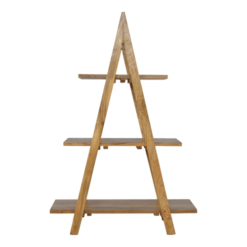 Introducing the Ladder Style Open Display Unit, a chic and versatile piece of furniture that seamlessly blends functionality with sophistication. Crafted from 100% solid mango wood and finished in a beautiful oak hue, this unique display unit features an elegant ladder design with three different-sized shelves. It is perfect for enhancing any interior space, providing a dynamic solution for showcasing cherished photo frames, ornaments, or books while merging practicality with aesthetic appeal.