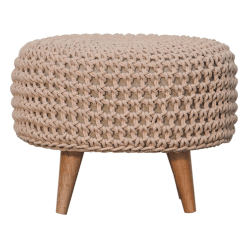 The footstool’s woven top is a masterpiece of comfort and craftsmanship. Its gentle beige tone adds a touch of sophistication to any setting, inviting you to rest your feet or use it as an extra seating option during gatherings. The meticulous weaving promises not only an aesthetically pleasing texture but also ensures a surface that’s both durable and soft to the touch.
