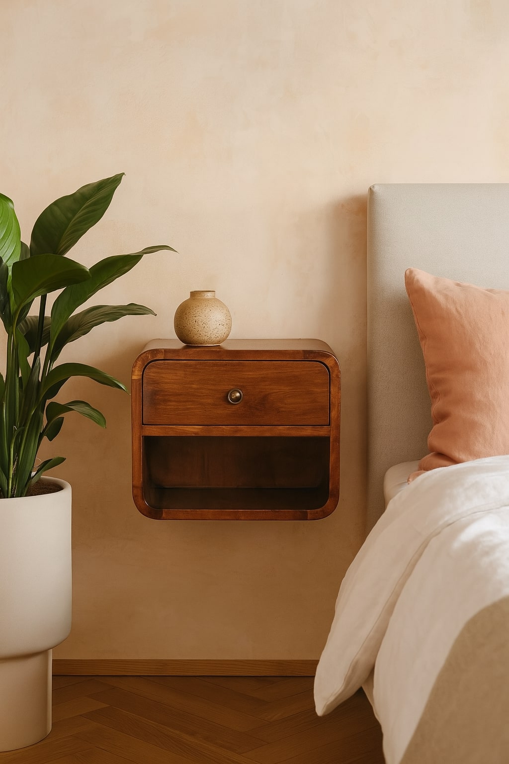 Enhance Your Bedroom’s Ambiance with the Sleek and Practical Mini Curve Floating Bedside