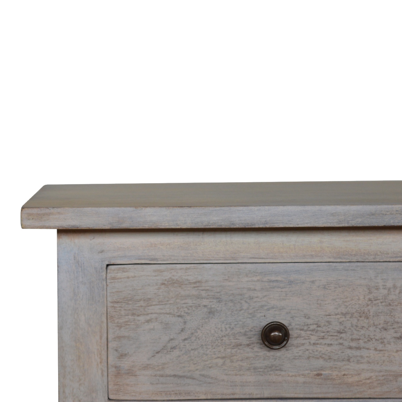 Embrace the exquisite craftsmanship of local artisans with the Mini Stone Wash Bedside Table. Handmade with dedication and expertise, each table exudes a charm that machine-made furniture simply cannot replicate. The selection of solid mango wood, shaping, and unique stone wash finish of each piece underscores the skillful workmanship of the creators. Every drawer pull and cabinet opening brings a sense of intimacy and connection to the artisan’s touch—a testament to a craft honed over generations.