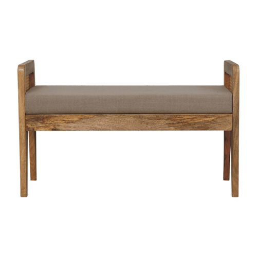Equipped with a mud linen seat, the bench provides plush comfort for those moments of repose. Whether situated in your hallway, at the foot of your bed, or as a feature in your living room, its soft cushion top invites relaxation and adds a tactile dimension to its overall charm.