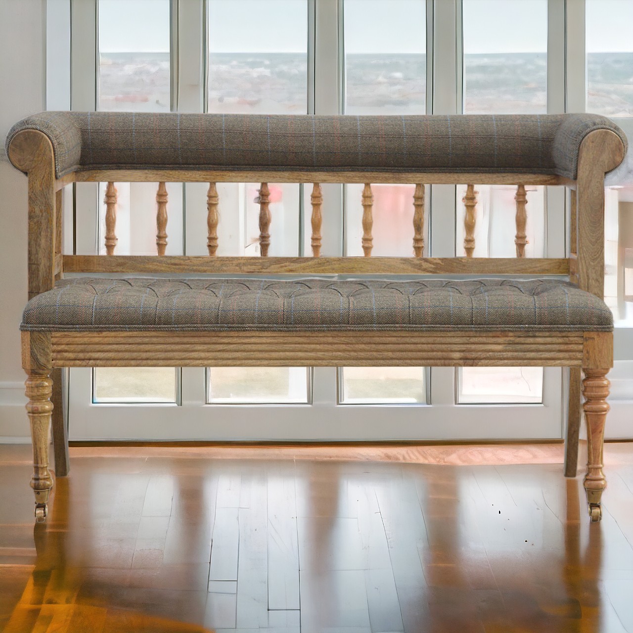 As each Multi Tweed Deep Button Bench is crafted by hand, it represents the culmination of traditional techniques and the personal touch of seasoned artisans. This celebration of human artistry ensures that your piece is not just a functional item but a treasure trove of stories, with every stitch and carving hinting at the heritage and dedication carried through generations of furniture making in India.