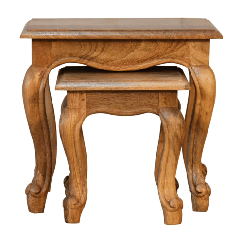 The Oak-ish French Style Stool Set is not just furniture; it is a testament to superior craftsmanship and enduring style. Each piece is individually handcrafted, ensuring that no two stools are exactly alike. This unique, artisanal approach to furniture making highlights the beauty of the wood’s natural grain and the distinct carving details that make these stools stand out.