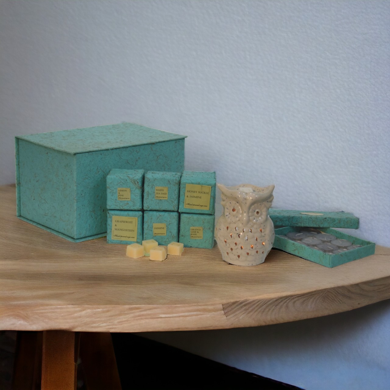 1x Wax melter + 4 x 6 Fragrances wax melts + 12x Unscented Tealight candles