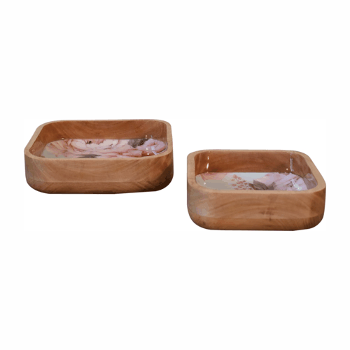 Dropship & Wholesale Pink Floral Square Bowl Set of 2