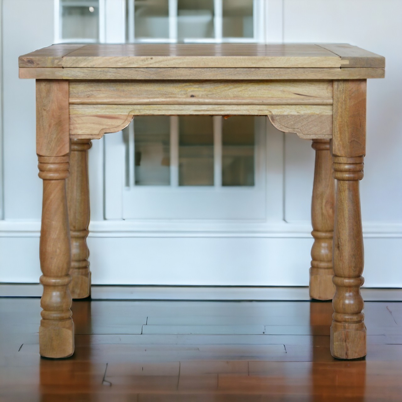 Rustic – Hand-carved mango wood tables with bold grains and natural edges.