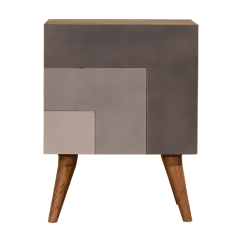 Step into the world of exquisite elegance with the Quebec Grey Bedside, a premier choice for those looking to enhance their sleeping quarters with a touch of sophistication and sharp design. This hand-painted marvel emanates a contemporary vibe through its iconic ‘L’ pattern, realized in three sumptuous shades of grey, promising to transform your bedside into a showcase of style and finesse. The understated hues of this bedside are versatile enough to harmonize with your existing decor, making it the perfect addition to any modern bedroom.