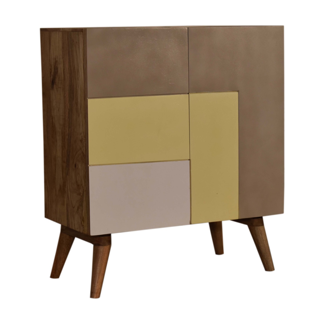 The Nordic style legs of the Quebec Yellow Cabinet give it a distinct silhouette that merges modern Scandinavian design with traditional robustness. These legs are not just an aesthetic pleasure but also offer a stable base, paving the way for a piece that is as reliable as it is striking.