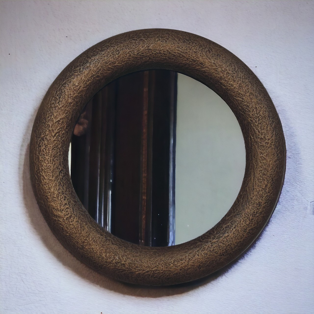 Caring for your Round Metallic Hammered Mirror is simple. To preserve its pristine condition, regular dusting with a soft, dry cloth is recommended. The wooden frame can be polished occasionally with a suitable wood cleaner to maintain its luster. Avoid using abrasive cleaners on the metallic finish to prevent damage.
