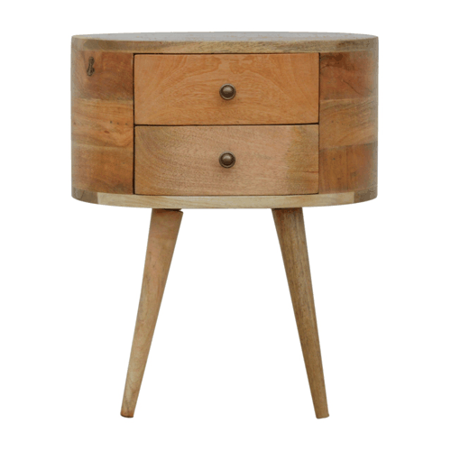 Discover the perfect blend of functionality and aesthetic appeal with the Rounded Bedside Table. This exquisite piece is more than just a bedside companion; it is a statement of style and craftsmanship that brings warmth and elegance to any bedroom. Crafted from 100% solid mango wood, this bedside table showcases a natural oak finish that celebrates the unique grains and textures of the wood, ensuring each piece is as distinctive as your personal style.