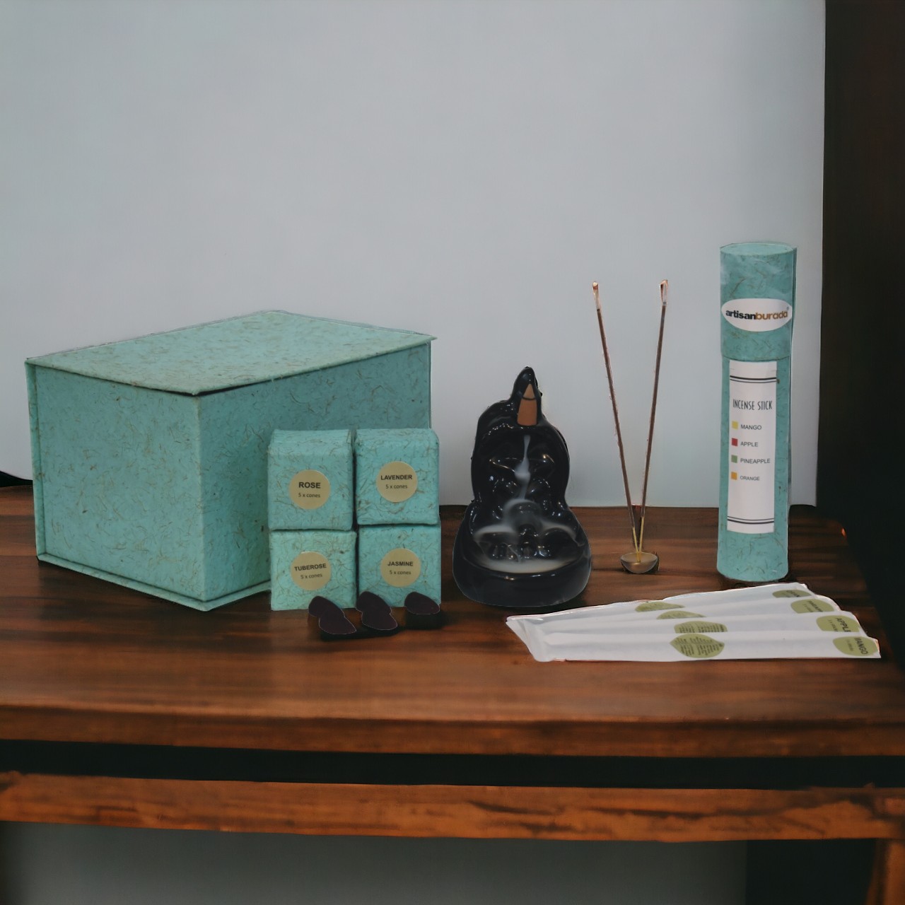 1x Backflow Burner, 1x Insence Holder, 20x Backflow Cones & 20x Incense sticks