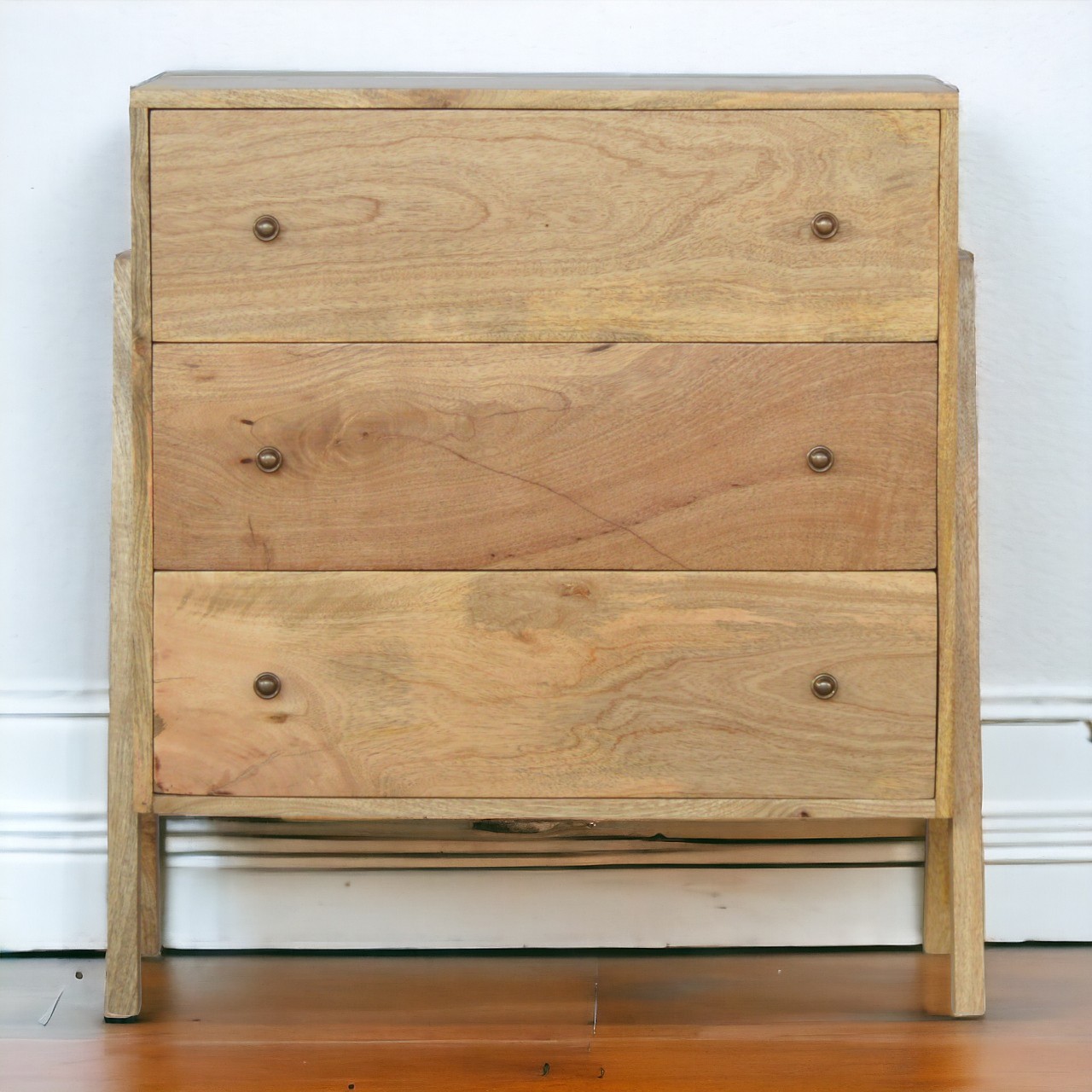 Introducing the Trestle Chest, a masterfully crafted piece of furniture designed to bring both functionality and style to any room in your home. The Trestle Chest, featuring a distinctive trestle design, is the epitome of modern, minimalist elegance perfect for contemporary and classic interiors alike. With three spacious drawers, each accented with shiny and elegant knobs, this chest offers ample storage space while enhancing the aesthetic charm of your living area.
