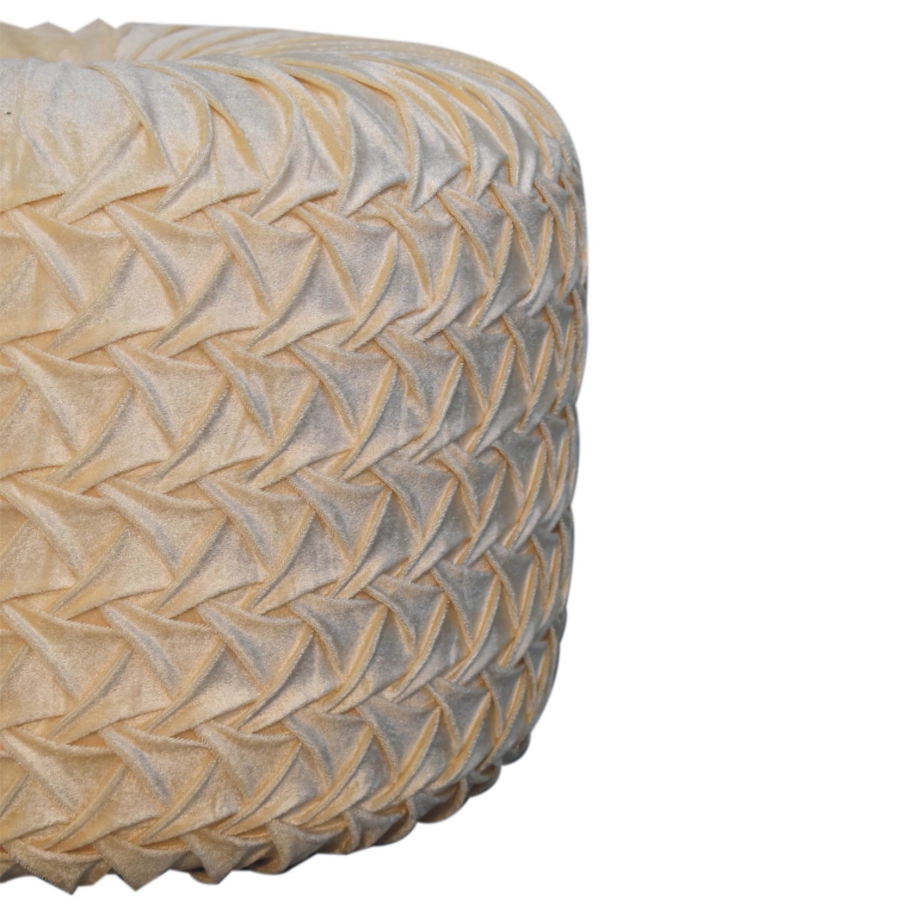 Crafted with meticulous attention to detail, this pouffe features a plush, deep-buttoned upholstery that beckons with an invitation to comfort. The pristine white color effortlessly harmonizes with any color scheme, establishing an aura of cleanliness and sophistication. The durable and soft fabric ensures a tactile experience that is as indulgent as it is elegant.