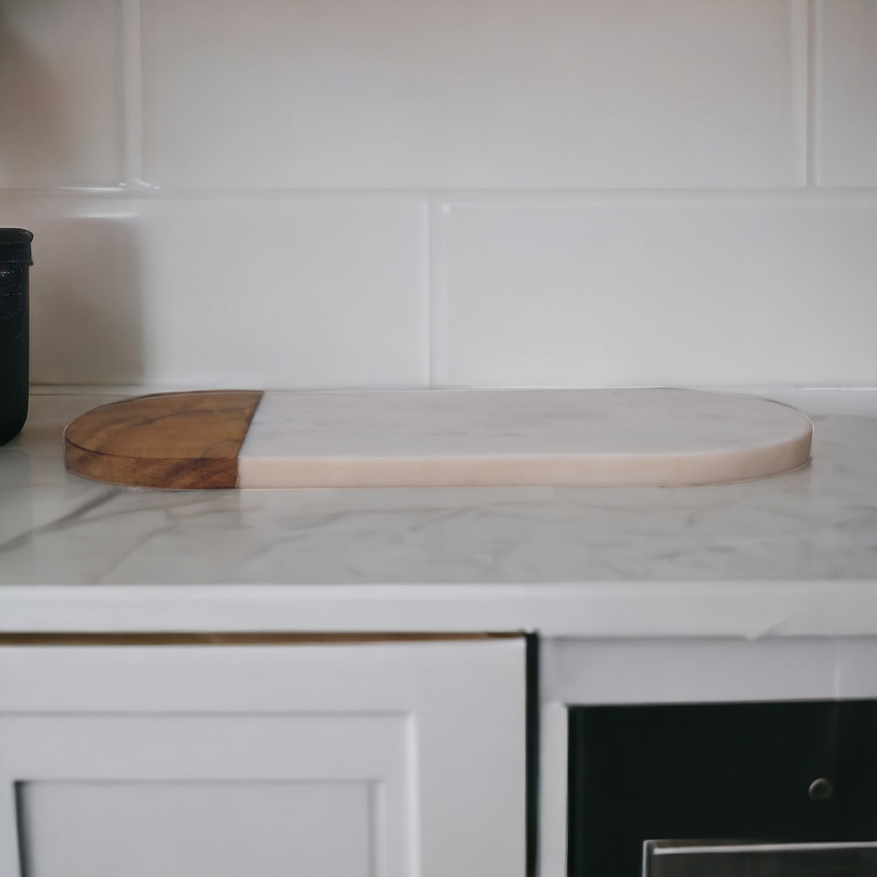 Each White Marble and Wood Chopping Board stands as a unique masterpiece, its distinctive pattern telling a story of geological marvel and arboreal beauty. The slight variations in texture, color, and grain are a celebration of its natural heritage, ensuring that no two boards are alike. Rather than imperfections, these differences mark each board as a distinct piece of art for your kitchen.