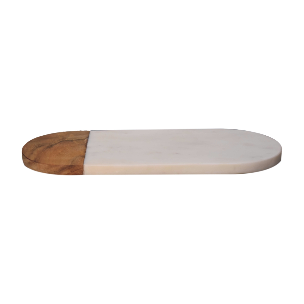 Masterfully crafted, this chopping board marries the cool, classic beauty of white marble with the warm, rustic appeal of natural wood. Its sleek silhouette echoes a contemporary style, while the choice materials pay homage to nature’s own artistry. Every meal preparation becomes a luxurious experience as your knives glide effortlessly over the smooth marble, or dance along the wood grain, depending on your culinary task.