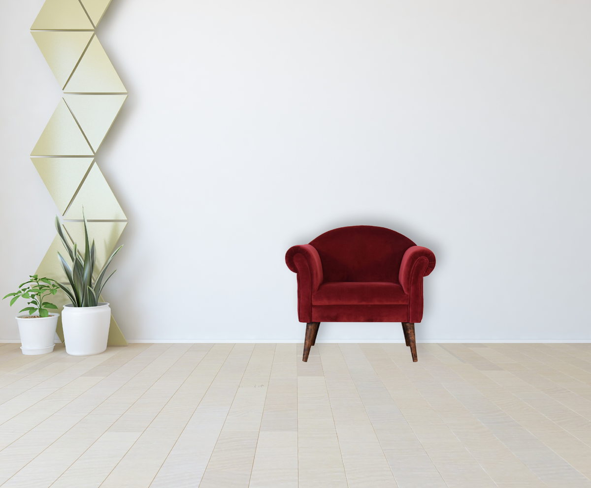 This armchair has been upholstered in a luxurious wine cotton velvet and features 4 nordic style legs constructed from 100% solid mango wood. This is a statement piece which can be added as a pop of colour to any room in the home or can be paired with many different styles and colours of interiors both modern or classic.