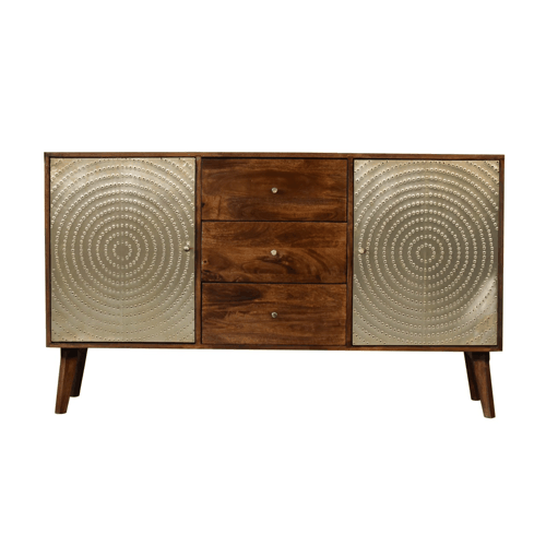 Each Zen Sideboard is a celebration of the skillful craft of dedicated artisans. The brass-patterned doors are the fruit of precise workmanship, representing a deep respect for the artistry that has been passed down through generations. Much like the handmade Indian furniture celebrated for its individuality and historical significance, this sideboard represents a blend of practical foresight and artistic tradition, ensuring that each model carries its own story and unique appeal.